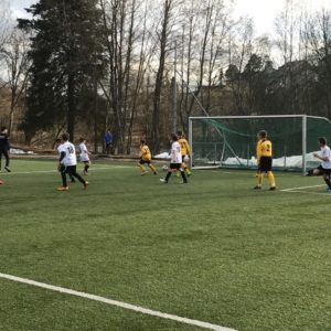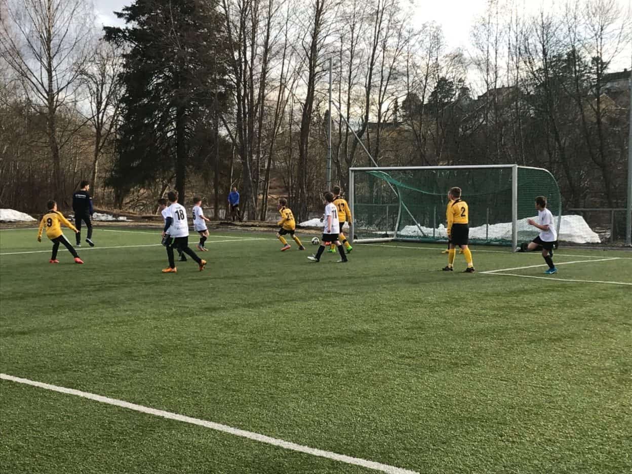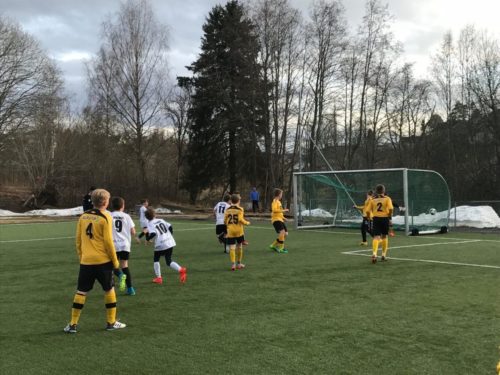 Etter utallige skudd mot mål fikk Magnus inn hennings første mål. Til pause sto stillingen 1-0 til Henning.